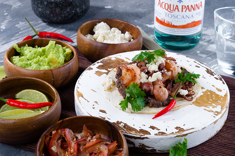 Традиционное мексиканское блюдо Тако состоит из кукурузной тортильи и начинки из мяса, морепродуктов или овощей. У него яркий, насыщенный аромат и острый вкус.