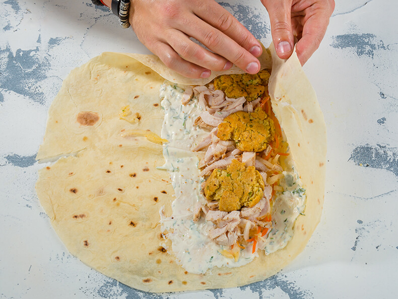 Арабское блюдо «шавафель» постепенно завоевывает сердца гурманов по всему миру. Нежные шарики пюрированного нута и пикантная шаурма с овощами и куриной грудкой не могут оставить равнодушными.