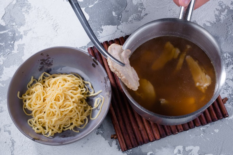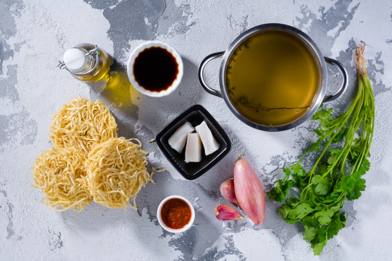 Сингапурское блюдо бак чор ми переводится как «лапша со свиным фаршем». Свинина предварительно маринуется и затем подается вместе с яичной лапшой.